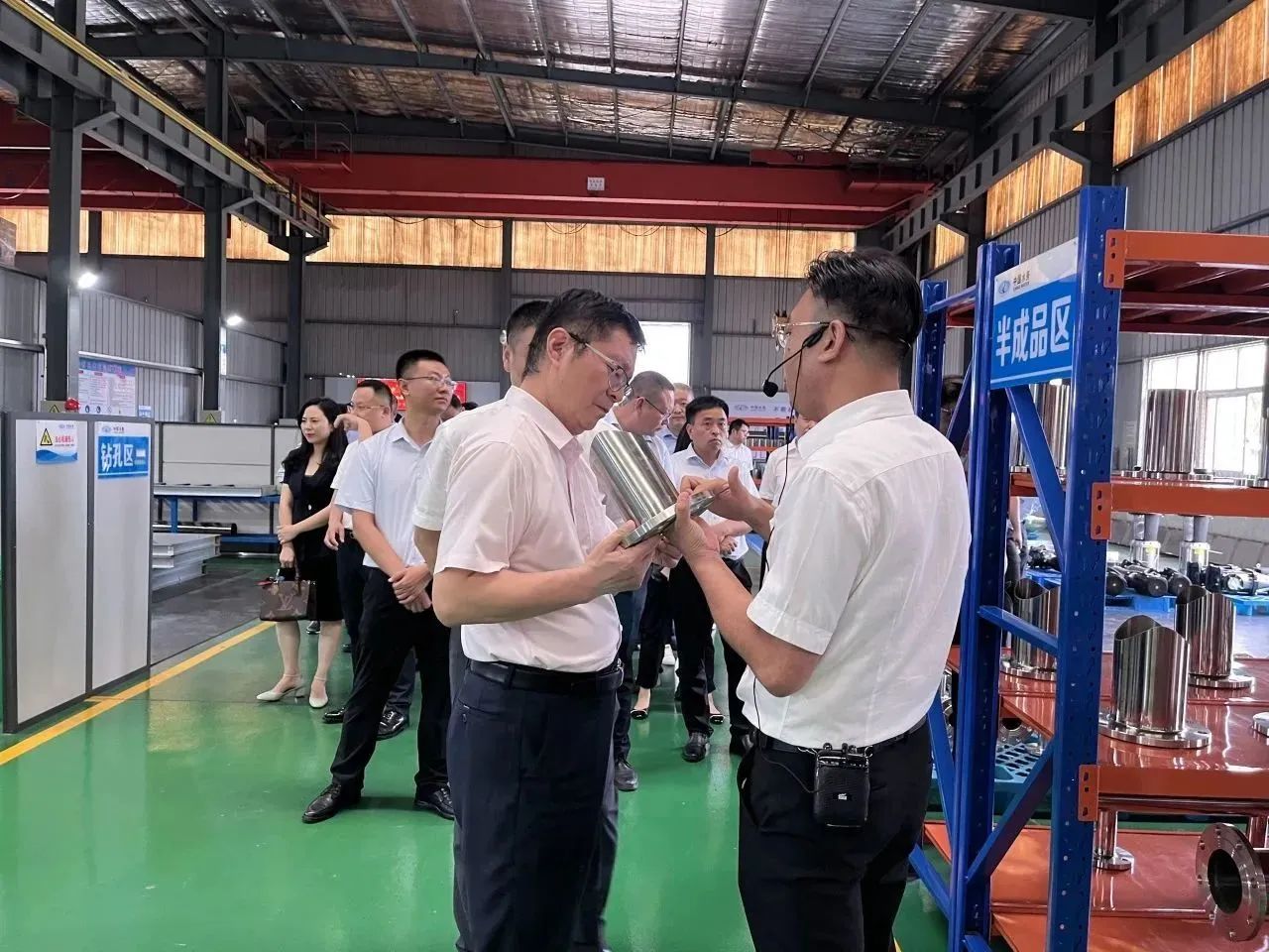 集團郭總在我司講解團的陪同下,帶領(lǐng)集團年輕干部培訓班成員先后參觀了我司機械、電氣生產(chǎn)車間、成品庫、二次供水設(shè)備展廳、二次供水監(jiān)控管理平臺及數(shù)字化智慧水務平臺。